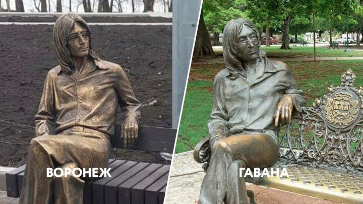 Близнец воронежского Джона Леннона отыскался... на Кубе! Сегодня позвонил один из крупнейших битломанов СССР и России, земляк В., в недавнем прошлом сотрудник РАН. Он, конечно, первым делом возрадовался факту установки в Воронеже «садово-парковой скульптуры» Джона Леннона, обратив при этом внимание на то, что она очень похожа на скульптуру великого «битла», расположенную в Парке Джона Леннона в Гаване (Куба). — С одной стороны, чувство радости охватило меня… — Восклицает битломан с большим стажем любви к музыке «Битлз». — Но когда я повнимательнее рассмотрел фото этой садово-парковой скульптуры, изумился! Это оказалась практически копия гаванского Джона Леннона… Совпало почти всё: поза, прическа, одежда… даже обувь… Разве что скамейку воронежские умельцы не стали копировать с гаванской один в один, а решили усадить Джона Леннона на нечто готовое, современно-минималистичное. Забавно, что на лице гаванского Джона нет его знаменитых очков-колёс! Дело в том, что очки легендарного «битла» п