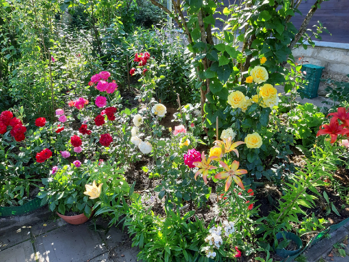 Ну, вот, подошла осень, вроде и мечта исполнилась, но семейная грядка получилась как заплатка на середине большой грядки. По мере посадки роз с этой грядки были эвакуированы 12 лилейников, три куста ромашек, ящик со щавелем, скромно притулившийся на задворках, и штук десять восточных лилий.