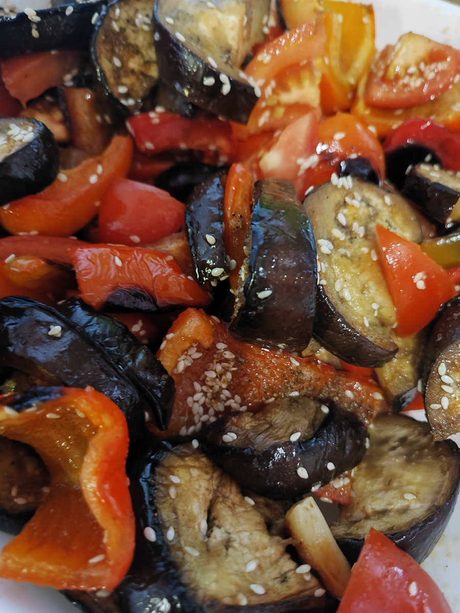 Всем привет) Я тот человек, который обожает салаты. Практически все. Но иногда так и хочется попробовать что-то новое. Вот и на этот раз я увидела рецепт салата из запечённых овощей и решила попробовать его сделать. Я допустила одну ошибку: баклажаны порезала крупными кружочками. Нужно было лучше кубиками. Из-за этого они у меня получились жестковатыми. Салат получился вкусным, хотя не до конца правильно приготовленным. Думаю, сделаю ещё раз его, но уже усовершенствую рецепт. А как вы относитесь к запеченым овощам? Любите салаты? Пишите в комментариях! Подписывайтесь на мой канал, скоро тут будет много интересного!