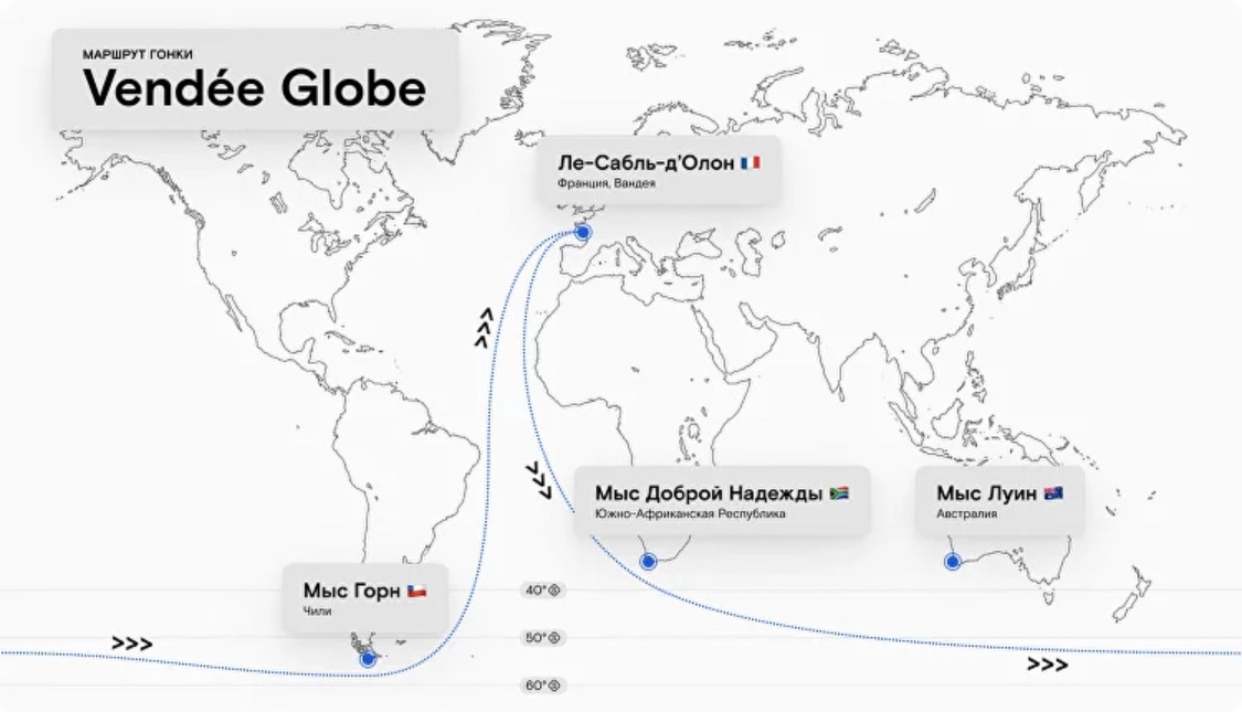 10 ноября 2024 года во французском городе Ле-Сабль-д'Олон стартовала регата, которую называют «Эверестом парусного спорта» — уже десятая по счету Vendée Globe, безостановочная гонка яхтсменов-одиночек вокруг Земли. В регате впервые принимают участие 40 гонщиков из 11 стран, и 6 из них — женщины. Рассказываем, как устроена главная одиночная кругосветка и за кого в ней болеть.