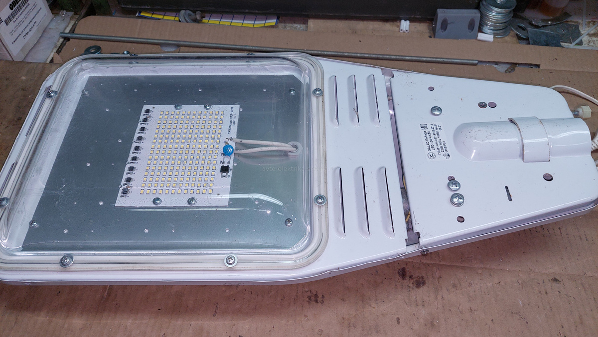 Через несколько лет работы уличного прожектора начинают выходить из строя светодиоды на модуле и прожектор отправляется на помойку либо в ремонт, который обычно не делают, просто покупают новый прожектор и ставят. Такой светодиодный модуль вроде бы есть в продаже, но купить его проблема, у продавцов не указана даже цена на него. Поэтому пробуем отремонтировать прожектор бюджетно, купив светодиодную матрицу в китайском интернет магазине. Ремонт прожектора О том как разобрать прожектор пошагово, сборка и замеры напряжений после дросселя при помощи ЛАТРа, который решили оставить читайте на страничке сайта: https://www.avto-elektrika-shema.ru/index/remont_ulichnogo_prozhektora_galad_pobeda/0-660 Видеоролик по ремонту прожектора: https://rutube.ru/video/435eeafb914ef59c76f428fed6092a6e/