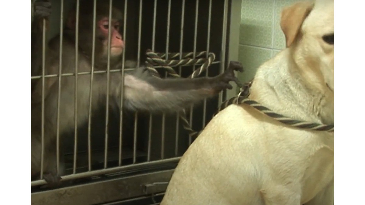Собака помогла обезьяне снова почувствовать себя счастливой