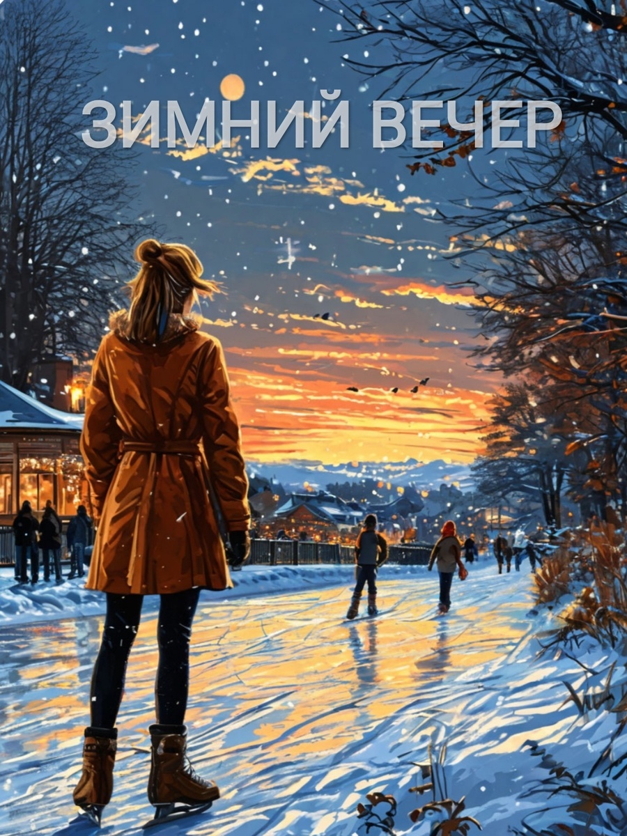 В тот волшебный зимний вечер мир окутало белоснежное покрывало, а воздух наполнился хрустальным звоном льда и тихими смехом. В снежных кружевах под светом уличных фонарей, словно звезды, искрилось всё – от морозного воздуха до деревьев, одетых в легкие сугробы. Город, такой привычный и знакомый, обретал новое волшебство. На центральной площади, где сверкающий каток явился сердцем зимних радостей, девушки и юноши крутились в танце, их коньки скользили по льду, оставляя за собой красивые следы, похожие на тонкие линии судьбы. И среди этого праздника зимней жизни была она – Алёна. Волосы ее, свободно распущенные, ловили лёгкие поддымки холодного ветра, а щечки горели от счастья. Она чувствовала, как ее душа сливается с ритмом мироздания. Каждый круг, каждый поворот — это был ритм, в котором она находила себя. Девушка кружилась, поднимая руки к небесам, уверенная в том, что зима принесла ей свою особую магию. Но вдруг её мир словно остановился — в центре катка, выписывая ковровую дорожку и