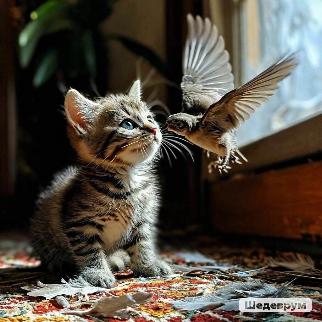 Добрый день, Светлана! Хочу пожелать Вам добра и удачи. Хочу рассказать о своем опыте. Не против публикаций. Не так давно, в моей жизни появился мягкий пушистик – ласковый, всегда мурчащий котенок, и поселилось в нашем доме озорство и веселье. Когда дома животные никогда не стоит забывать, что, во-первых, это животные, даже, если такие умные и милые как кошки. И вот как-то я просыпаюсь от утренних гонок по квартире и вижу кучу перьев и довольного котенка, который от души с чем-то играет. Это была синичка. Она залетела на балкон и не ожидала такого поворота судьбы. Птичку очень жалко. И мне стало не по себе, я подумала, что это какой-то знак, погуглила - всё неоднозначно… Ещё это случилось не в самый лучший период моей жизни, и я начинала думать, как это расценивать, к добру или как, накручивать себя. Но, когда через пару дней он поймал еще, а потом еще и еще, тогда я подумала, что это просто жизнь. Ведь синички и раньше залетали на балкон, я частенько замечала следы пребывания их на ба