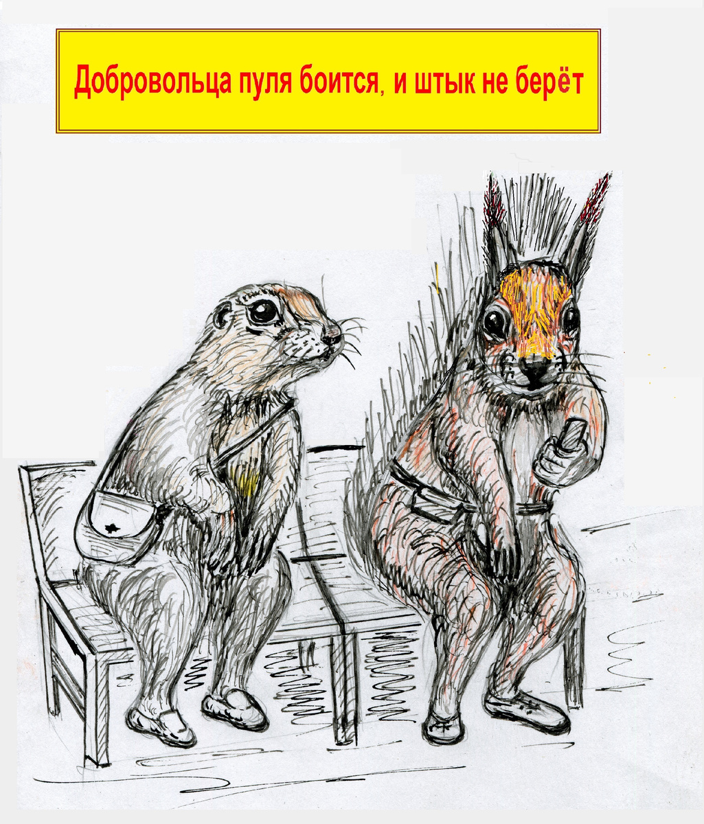 - Хоман сказал, от них в центр города автобус пустили. Поедем на автобусе, - предложил пес Полкан. - Поедем, погода нелетная. Лучше на автобусе, - согласилась Арния. Действительно ждать пришлось не долго, подъехал автобус. У мыши были даже какие-то деньги, и она расплатилась за билеты. Сели поехали, тепло и сухо. Въехали в город, на одной из остановок в автобус вошел патруль из трех грызунов. Стали проверять документы. Придрались к одному суслику. Один патрульный стоял возле суслика, двое подошли к друзьям, потребовали документы. Мышь дала, она была уверенна в документах, ей сразу вернули, а от Полкана начали требовать военный билет. Полкан сказал, что у него с собой нет. На что ему ответили, сейчас в такое время все военнообязанные грызуны должны носить с собой военный билет. Полкан сказал, что он не военнообязанный. На что ему возразили: если так, то в удостоверении должна стоять отметка. Или же в военном билете указано, какая у него категория. Так что Полкан задержан до выяснения об