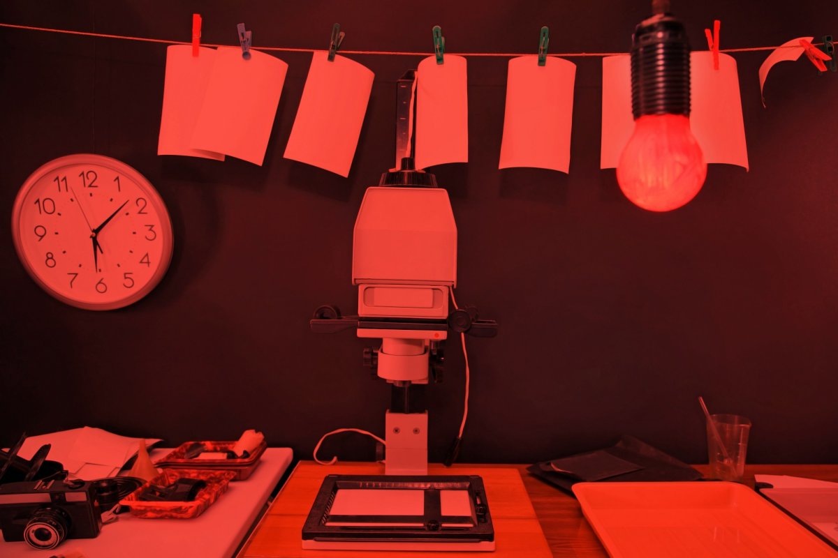 Между прочим, в кладовке, на наружной стенке которой прикреплен турник, Женя устроил фотолабораторию. Кладовка небольшая, не больше полутора метров в длину и метра в ширину. Но Женя в ней как-то смог разместить все необходимое оборудование. Сначала он закрыл окно из кладовки на кухню плотной тканью, так, чтобы ни один лучик света не проникал. Потом смастерил что-то наподобие стола вдоль стены. На этом столе мы поставили фотоувеличитель. Там же было еще немного места для ванночек с проявителем и закрепителем. В верхнем углу висел фонарь, светивший таинственным красным светом.