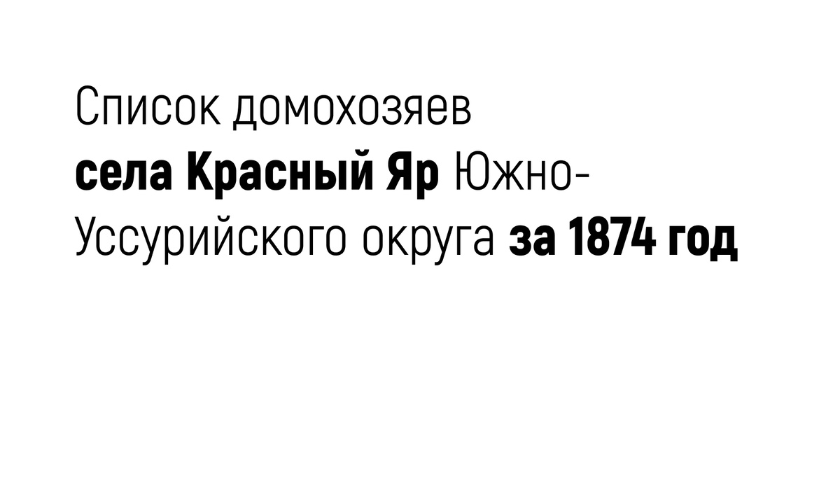 Список домохозяев села Красный Яр на 1874 год (совр. Уссурийский г.о.)