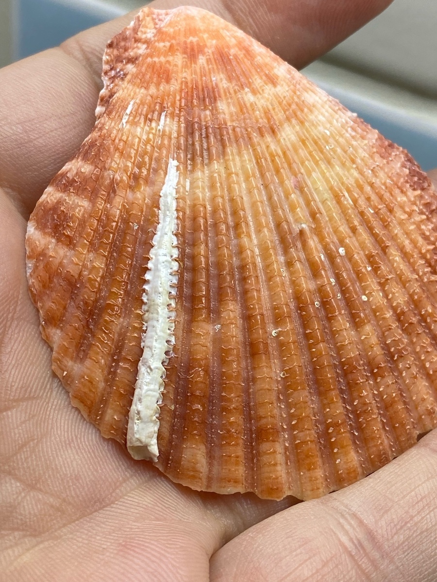 "Это раковина современного двустворчатого моллюска гребешка, а этот "нарост" — домик многощетинкового червя семейства серпулид https://ru.wikipedia.org/wiki/Серпулиды"