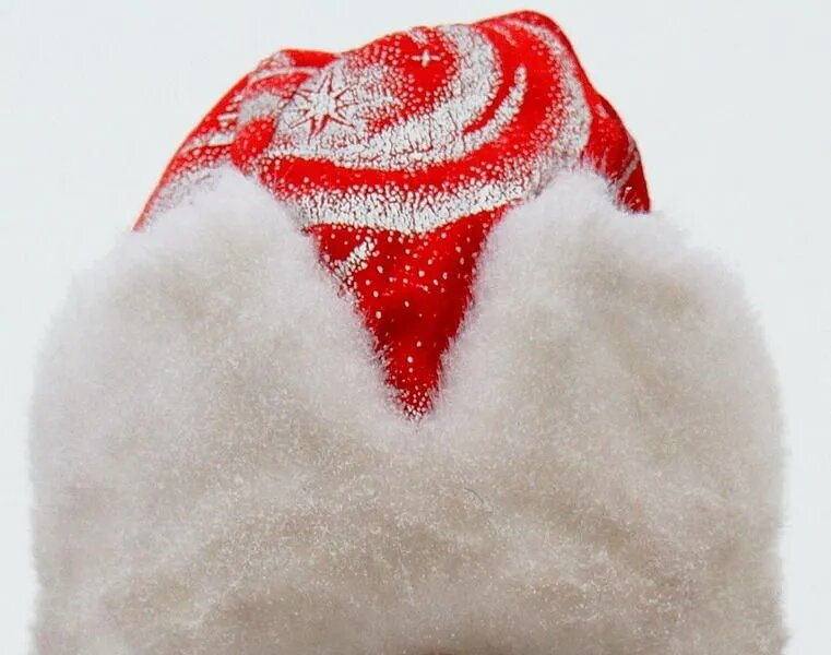 Шапка Дед Мороз носит шапку полуовальной формы, как у боярина, однако на её лицевой части должен быть треугольный вырез. Цвет, орнамент, оторочка – всё должно соответствовать шубе. Всякие колпаки с кисточкой – это к Санте.