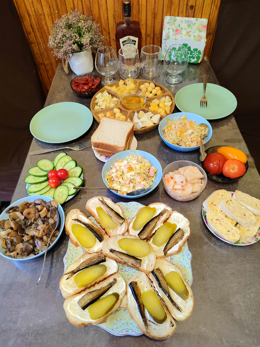 Доброго времени суток, мои дорогие друзья и гости канала. Встала вчера в 7 утра - это, конечно, достижение. Думала, что в 4-5 подъем будет, потому что накануне Санька заснул очень рано. Пожалел мать))) Выровнила торт, погладила, заказала доставку в Дикси через Купер. Очень захотелось сырную тарелку, а в магните нет такого выбора сыра, как в Дикси, но это моё мнение. Потом сделала бутики со шпротами, в этот раз решила с маринованными огурцами, а свежие просто порезала. А к чему вся эта подготовка? Да ко мне в гости Ольга приезжала. Мы с ней не виделись месяца два, наверное, ещё на той квартире. Посидели очень душевно. Оля привезла грибочки маринованные, репу с маслом и со специями, очень вкусно, вяленые помидоры. Короче, стол накрыли, как всегда, классный. Пока Лиза была дома, попросили её сфотографировать. А то потом она уехала во МХАТ с Полиной. Подруга дарила билеты на день рождения. А Оля привезла мне корзину в качестве презента типа на новоселье. Она сейчас делает вот так