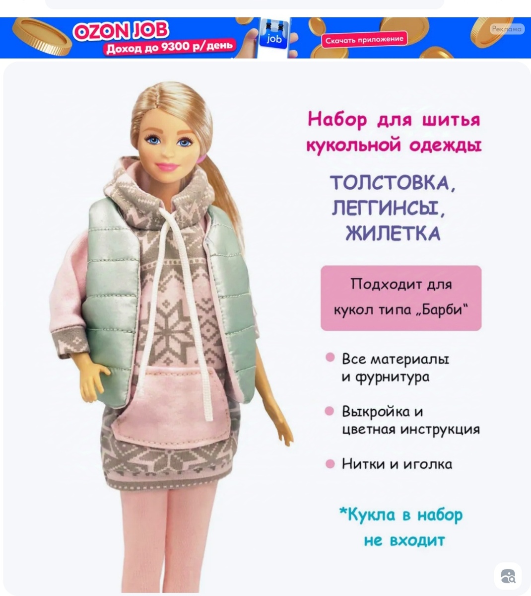Всем доброго дня (или вечера)! Мне тут недавно высказали, что я мало пишу... Попробую исправляться. Давным-давно, ещё весной, я заказала на озоне набор для шитья. Вот такой, наверняка большинству коллег по хобби эти наборы знакомы. Понравился стиль, расцветка тканей, ну и выкройки, думала, оставлю, буду шить по ним. Набор пришел быстро, дома я его распаковала и ... Ткани на месте, выкройка толстовки на месте, а выкройки леггинсов и инструкцию по пошиву не доложили. А мне надо! Короче, я немножко обиделась, засунула набор в шкаф и забыла про него. И вот неделю назад вытащила и решила сшить хотя бы толстовку. Вот такая картонная коробочка. Это начинка. Два вида трикотажа, ткань типа экокожи на жилетку, синтепон, нитки и игла с резинкой. На выкройке видно детали толстовки и жилетки. Все выкройки я вырезала и сложила в файлик, храню все выкройки именно так, не перемешиваются и не мнутся. Выкроила все детали с припуском 5 мм. Сначала пришила карман, для меня это было самое сложное, нако