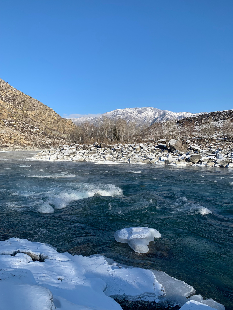 Слияние рек расположено перед селом Малый Яломан. Здесь можно любоваться бурной Катунью и льдом, красиво намерзающим на каменистый берег. Мы были здесь в декабре и Большой Яломан был полностью замерзший, но Катунь неслась бурным потоком. На берегу обустроен платный кемпинг, но в зимний период в кемпинге никого нет и можно подъехать максимально близко к слиянию и погулять по берегу. А вот летом за проезд берут плату. Также можно машину оставить перед забором и пойти пешком, идти 400 м. 📍Республика Алтай, Онгудайский район, с. Малый Яломан, место на карте Чуть выше слияния расположено Яломанское городище - археологический памятник, который датируется VIII–IX веками. Городище представляет собой остатки древних тюркских сооружений. Город-крепость был защищен с двух сторон крутыми обрывами Большого Яломана и Катуни, а с напольной стороны — специально возведенным валом сложной конструкции и глубоким рвом шириной около шести метров. Плато, на котором располагался город, находится на 30 метр