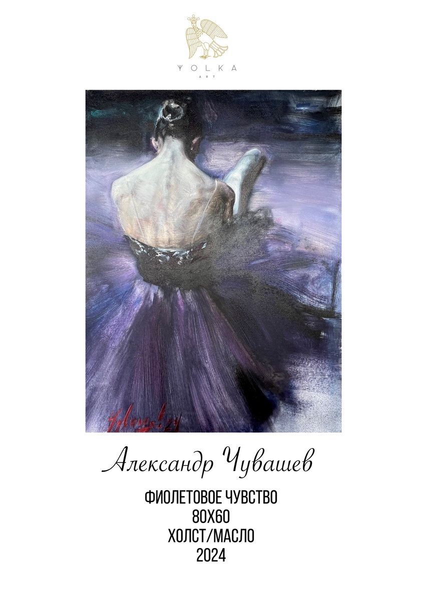 Балетная тематика в живописи прочно связана с творчеством Эдгара Дега. Александр Чувашев не избежал влияния великого импрессиониста. Подобно Дега художник сторонится устойчивых форм, симметрии и не пытается создать у зрителей впечатление завершенности действия. Пространство на его полотнах зыбко, подвижно и всегда направлено вовне, словно выплескивается за пределы картины. В похожем ключе Чувашев трактует категорию времени. Художник будто замораживает отдельные секунды - стоп-кадры, однако делает это так, что мы особенно отчетливо начинаем воспринимать непрерывность временного потока. ••• Погрузиться в ритм и пластику балетного искусства можно в галерее YOLKA art до 10 декабря 2024. ••• Москва. Ходынский бульвар 20а, с 11:00 до 21:00 ежедневно. Выставка бесплатная, работы продаются. Вся контактная информация на сайте YOLKA.art