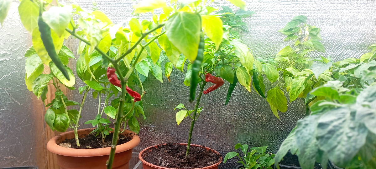 Приветствую всех на традиционной рубрике канала, в которой я рассказываю о состоянии моего зимнего огорода. Сегодня покажу острые перцы и помидоры. Приступим. На двух перцах поспело по одному плоду. Они конечно меньше, чем плоды, выращенные на обычном огороде, но для домашних растений это хороший показатель. Остальные плоды пока что зелёные. По сравнению с предыдущей частью, оба растения заметно подросли. Кстати, рядом с ними в стаканчике, который завернут в пакет, прорастает клубника, и там проклюнулось одно семечко. В скором времени оно должно взойти. А пока переходим к помидорам. Все три томата просто растут, намёков на плоды и цветы пока нет. Думаю, их надо пересадить в ёмкости большего объема. На сегодня у меня всё. Всем до скорого!