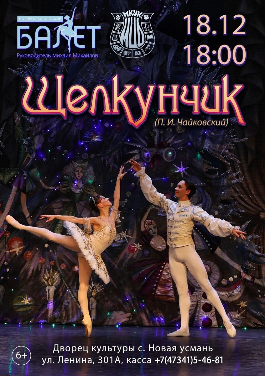 Уважаемые друзья! Приглашаем Вас на уникальное событие, которое подарит вам незабываемые эмоции и погрузит в атмосферу настоящего праздника. 18 декабря 2024 года в 18:00 на сцене Дворца Культуры села Новая Усмань состоится выступление Нового классического балета из Москвы под руководством талантливого Михаила Михайлова. В этот вечер вы сможете насладиться шедевром мировой классики – балетом «Щелкунчик» П.И. Чайковского. Очарование классики Балет П.И. Чайковского «Щелкунчик» – это не просто спектакль, а настоящая сказка, которая завораживает зрителей своим волшебством и красотой. С момента своего появления на сцене, это произведение стало символом новогодних праздников, вызывая у зрителей самые теплые и радостные воспоминания. Вы сможете увидеть на сцене завораживающий Танец феи Драже и нежнейший Вальс Цветов, которые подарят вам мгновения истинного волшебства. Не менее впечатляющими являются и другие номера балета, такие как танцы Шоколада, Кофе, Чая и множество других, которые пе