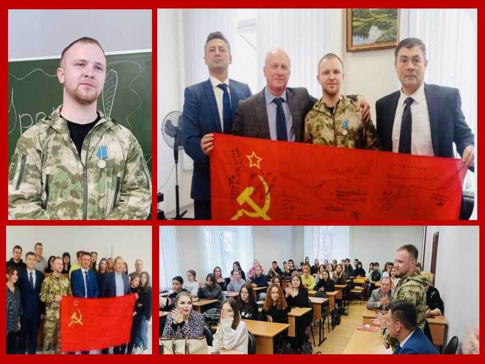 Член Союза советских офицеров с позывным «Платон», находившийся в отпуске по ранению, перед убытием в действующую армию провёл встречи с ветеранским активом, а также со студентами, принял участие в научном круглом столе. Несмотря на кратковременность отпуска, боец СВО с позывным «Платон» не мог не встретиться с ветеранским активом Королёвского отделения «Союза советских офицеров», а также с учащимися и студентами. Он провёл две встречи с ветеранами из числа советских офицеров, а также побывал в родном лицее, где встретился с учителями и наставниками. Координатор Союза советских офицеров С. Новрузов и председатель городского отделения Дети войны Л. Лебедева пригласили «Платона» на встречу со студентами – будущими юристами. «Платон» ответил на многочисленные вопросы, рассказал о фронтовых буднях, о мужестве и патриотизме наших воинов, защищающих Донбасс от националистов. Студенты и их наставники, напутствуя убывающего на передовую гвардейца, вручили ему Красное знамя, а также письма бойц