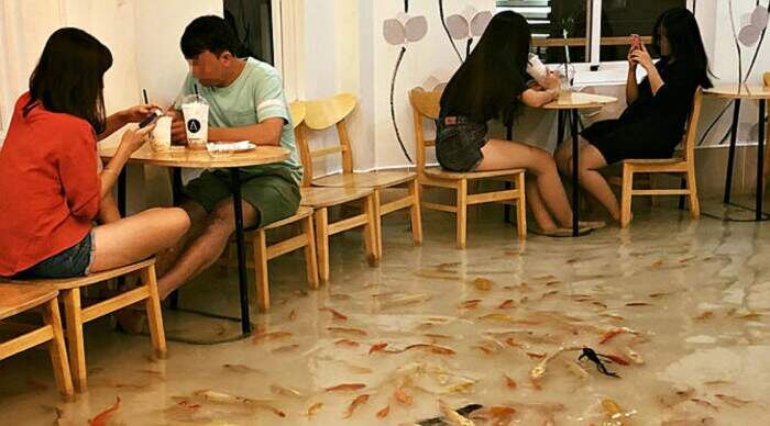 Кафе, где можно насладиться чашечкой горячего кофе вместе с домашними животными, такими как кошки, собаки или даже овцы, появились по всему миру, но Amix Coffee — единственное уникальное место, где можно расслабиться вместе с множеством рыбок, которые плавают у ваших ног.