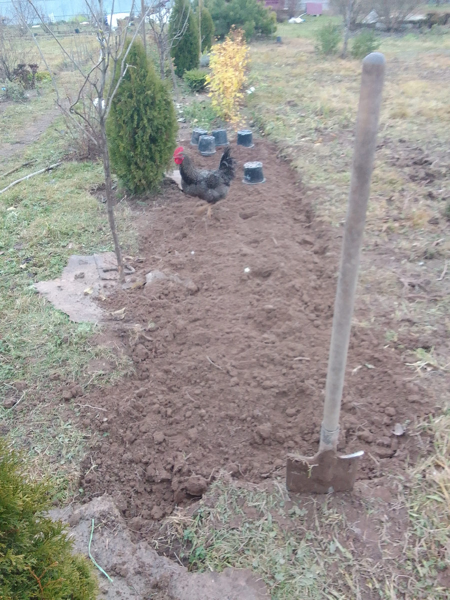 Воскресенье, 17 ноября. Ощущаю себя гидрометцентром. Даю точный прогноз погоды на исходе дня. Ни дождя, ни снега. Плюс 5. Что ж, можно и поработать на свежем воздухе. Возможно, со стороны мои физнагрузки поздней осенью на участке покажутся охинеей. Но у нас особые условия -- территория практически освоена лишь на 30%. Осваивать и осваивать, но время поджимает. Надо спешить. Готовить на весну землю для новых "ландшафтных" гигантов. Дизайнерству садовому неплохо бы и подучиться. Вопрос, когда. Впрочем, с привеликой пользой для себя слизыааю у вас, дорогие мои, идеи. Так что отправилась с лопатой к туевой аллее. . Живая "граница" вдоль дорожки к птичнику с прошлой весны в состоянии " доделую завтра". Но то, се - за лето не успела. И надо же, в ноябре нашлась минуточка исправиться. Исправлялась пару часов. Хорошего помаленьку.