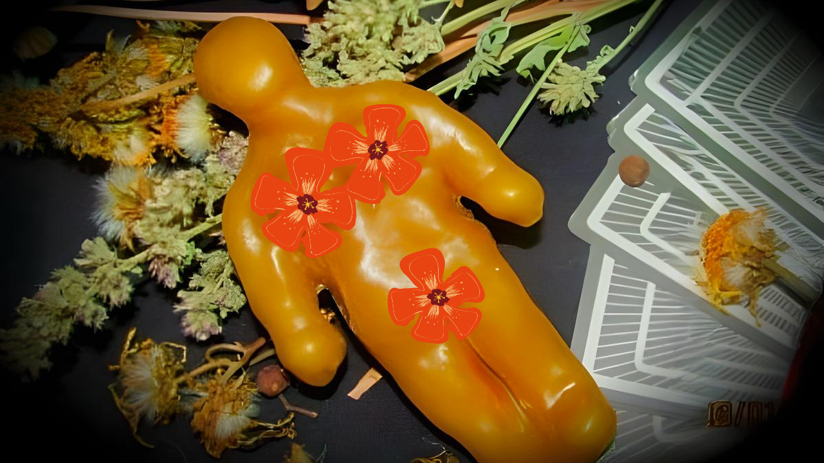 Разбираем Вольт, убираем из него фото, волосы, ногти. Затем, разминаем воск руками, чтобы кукла превратилась в кучку воска. Читаем заговор: