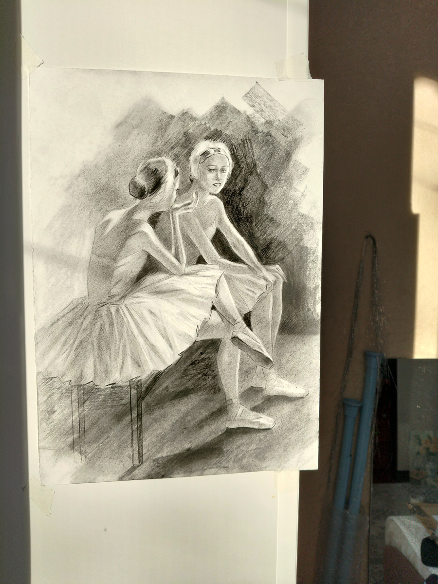 Одна из последних моих работ Нет чувства, что я полностью довольна этой работой. Долго не могла решить, на сколько детально я хочу ее сделать. Хотелось оставить ощущение лёгкости наброска Сейчас у меня большое желание рисовать графику в балетной тематике 🖤 Первый этап - перевела рисунок с черновика на чистовик Начала постепенно набирать тон В конце закрепляю графику лаком