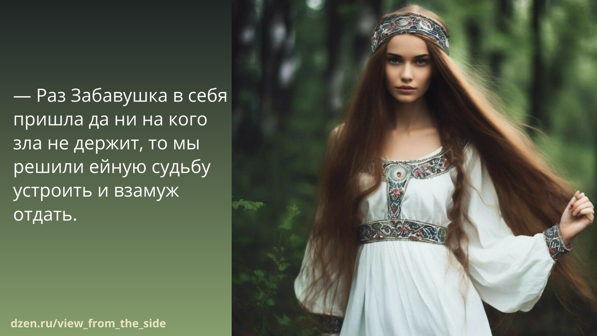 — Вот пустая моя голова, чуть про главное не забыл! — воскликнул он. — Раз Забавушка в себя пришла да ни на кого зла не держит, то мы решили ейную судьбу устроить и взамуж отдать. А то уж семнадцатый годок ей идёт. Нехорошо такой лепой девке безмужней ходить, хлопцев с ума сводить. Правда, ведь, Божена?