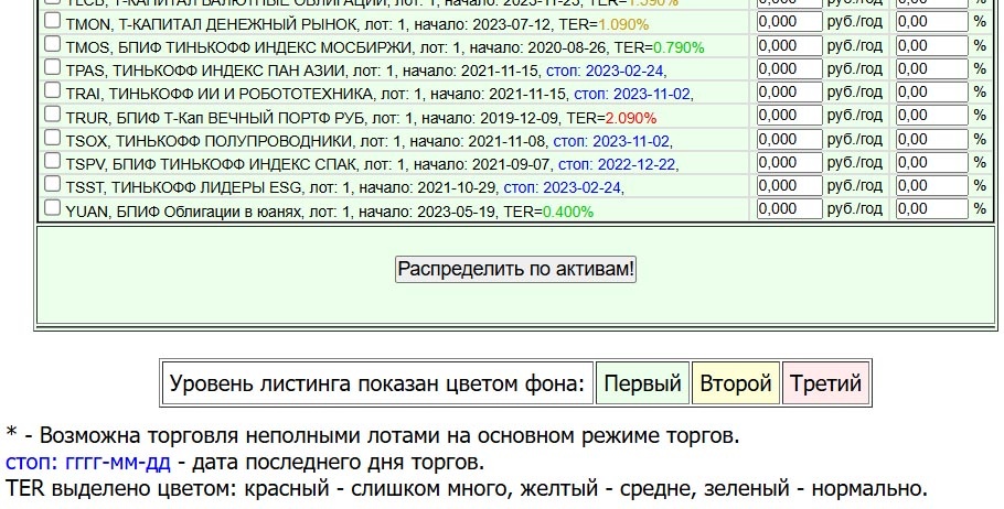 На прошлой неделе возвратил в онлайновый калькулятор Дивайдер почти все активы, которые удалил из него за последние 2 года в связи с прекращением торгов. В форме ввода у них теперь после даты начала торгов стоит пометка синего цвета в формате