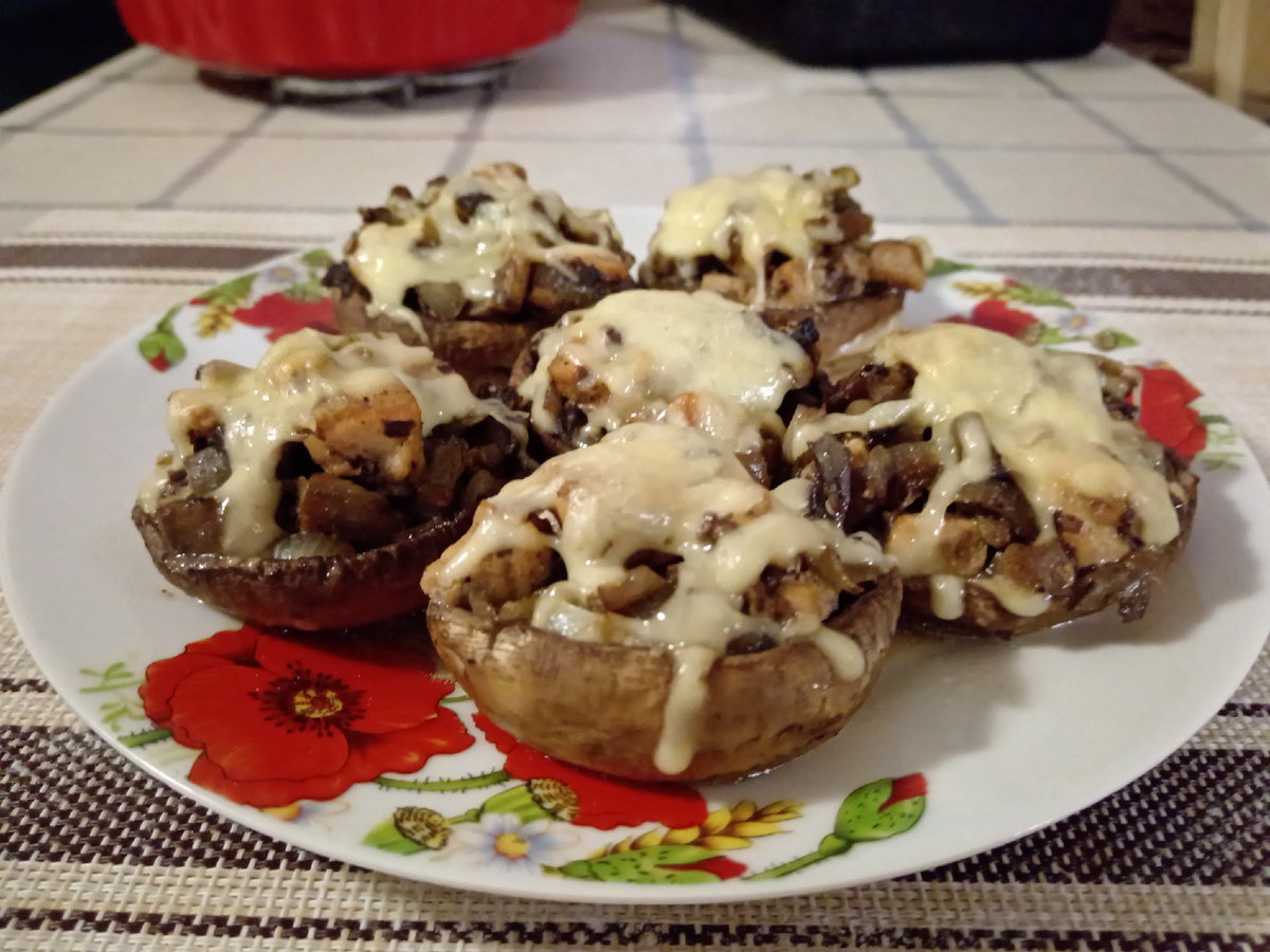 В чем только не подают жульен: в горшочках, в специальной посуде - кокотницах , в тарталетках, в блинах, а ещё оригинальная подача в шляпках грибов! Возьмём: Промоем грибы под проточной водой, срежем ножку, пластинчатый слой и чуть срежем кромку у шляпки. Обжарим на сливочном масле лук и ножки грибов. Солим и перчим. Куриное филе режем на мелкие кубики, Обжарим вместе с грибами. Тушим пока не выпарится влага. Берем шляпки, снаружи обмазываем сливочным маслом, изнутри чуть посолим. Фарширум грибной начинкой. Посыпаем тертым сыром.. Теперь в духовку, на 15-20 минут, при температуре 200 г. Оп! Быстро, и как красиво! Но готовить лучше прямо перед подачей на стол, подавать горячими! Пробуйте приготовить на праздничный стол! Они очень сытные, а какие ароматные! Подписывайтесь на мой канал, пишите комментарии! Спасибо что дочитали мою статью!
