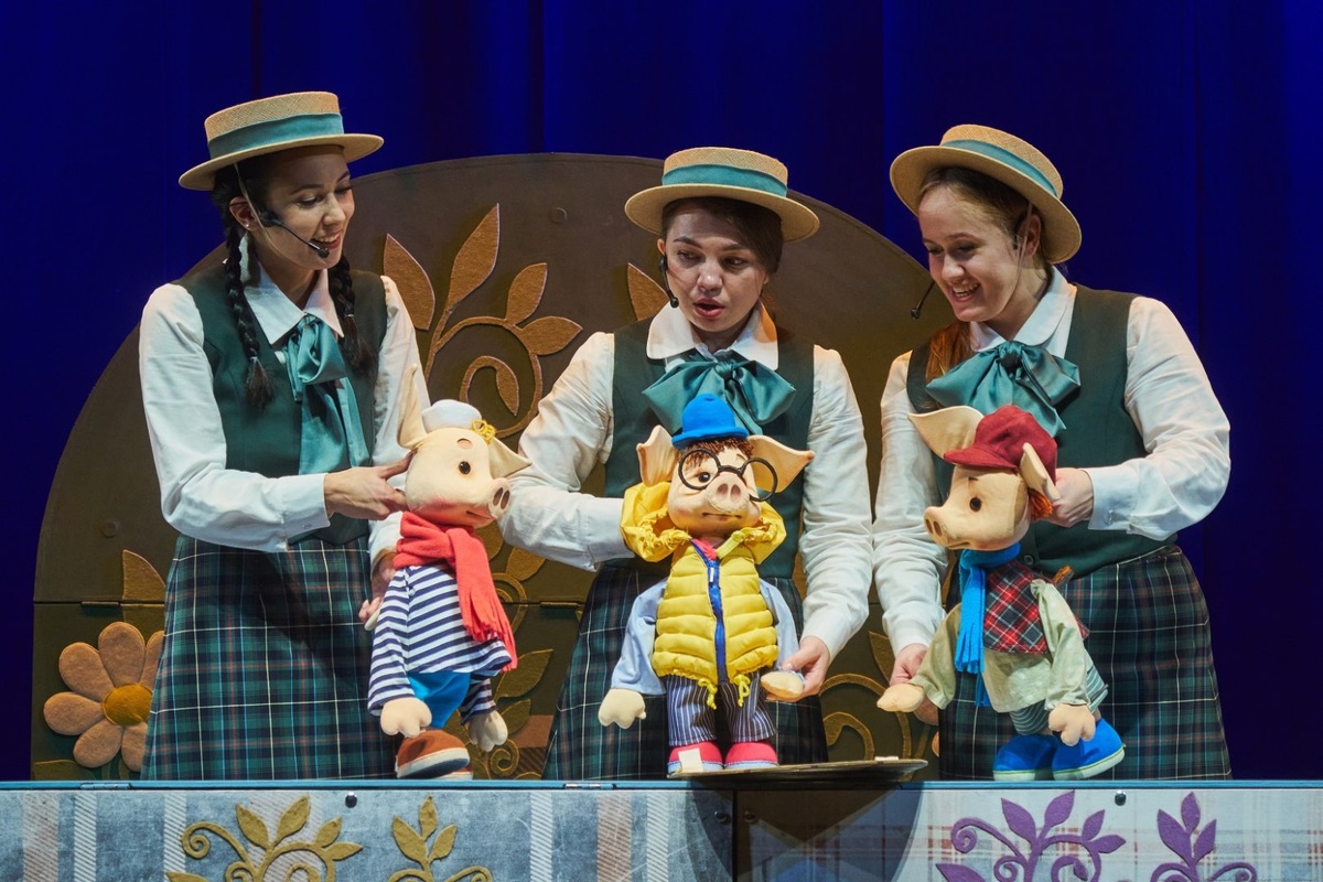 Сказка получилась очень яркой и музыкальной, с погонями, смешными приключениями и запоминающимися куклами. Три поросёнка танцуют, играют и поют. А остроумный волк, конечно, хитрец, но не такой уж и злодей.