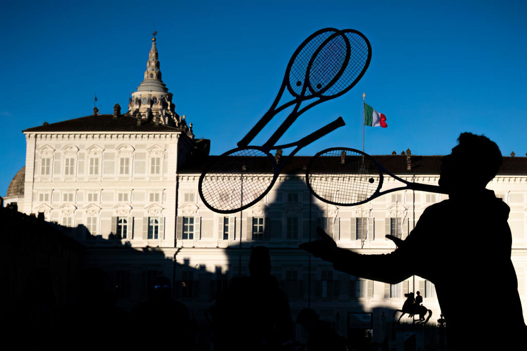 Площадь Кастелло, центральная в Турине, в этом году оформлена чуть более скудно: подвешенные теннисные мячи над фонтанами можно видеть во время телевизионных трансляций, а привычных ранее мини-столов для настольного тенниса и мини-кортов для всех желающих попробовать свои скиллы в теннисе – нет.