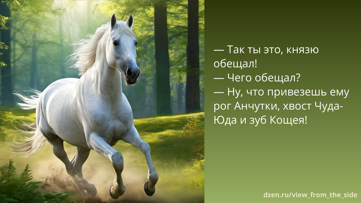 — Ну, что привезешь ему рог Анчутки, хвост Чуда-Юда и зуб Кощея!