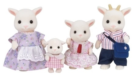 Семей коз в Сильвании две. О первой, Nettlfield/Неттлфилд я уже рассказывала. Вторая семья коз вышла в 2013 году в Японии и состояла из четырех фигурок - родителей, дочки и стоящего малыша. Фамилия новой семьи созвучна с предыдущей - Brightfield/ Брайтфилд. Никаких глубоких смыслов в фамилии я не нашла. Вот так выглядел первый японский выпуск: В Европе коз тоже выпустили, правда пару лет спустя - в 2015. Они даже доехали до России и иногда этот выпуск попадается на Авито. Вышли козы и под маркой Calico Critters: Малышей другого формата для этой семьи почему-то выпускать не стали. В 2020 году к 35-летию бренда Epoch запустили голосование, в ходе которого все желающие могли выбирать самые любимые семьи. Тройку лидеров производитель обещал перевыпустить. Козы -к тому времени уже снятые с производства- заняли четвертое место и, к радости коллекционеров, тоже удостоились перевыпуска. Обновленная семья вышла в 2021 году. Молд в перевыпуске оставили прежним, как и состав семьи, а вот од