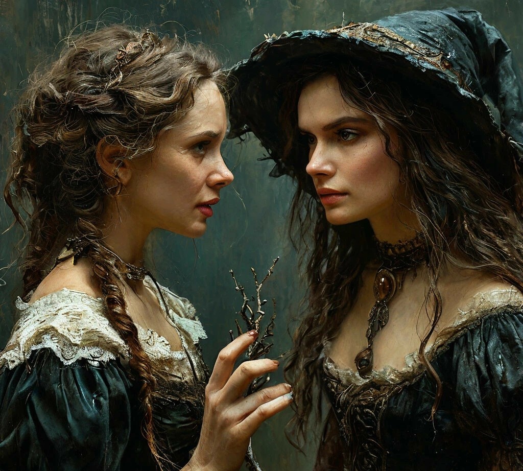-Ну чего рассказывать? - ответила женщина,- Он со мной, а как будто не может от бывшей отделаться. Как наваждение. Ночью меня ее именем называет, скучает по ней, тоскует. А она то, она. Господи , посмотреть не на что. Ну посмотрите, вот её фото. Где она и где я. Она ещё и старше меня на 10 лет. Ничего не понимаю. Чего он в ней нашел и чего так страдает. Ведь ушел же от нее ко мне. Колдунья взглянула на фото и ответила:"Дааа, дорогуша,дело-то очень сложным будет...."