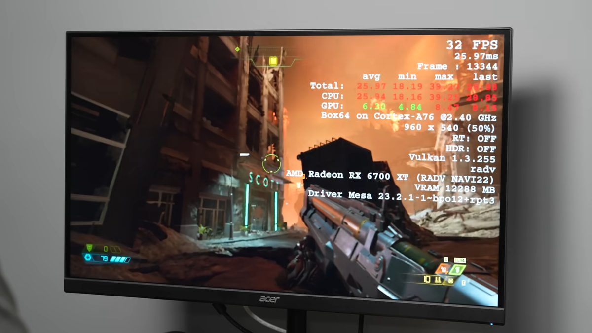 На системе удалось запустить Doom Eternal: независимо от разрешения средняя частота кадров держалась в диапазоне 20…35 FPS, изменение настроек практически не влияло на производительность — оно и понятно — узкое место процессор. Удалось запустить и Crysis Remastered: 20…30 FPS в разрешении 4K. Джефф Гирлинг также тестировал и другие игры, к примеру, Red Dead Redemption 2 не удалось запустить из-за проблем с лаунчером. В числе других интересных подробностей: возможность использования Steam Link.