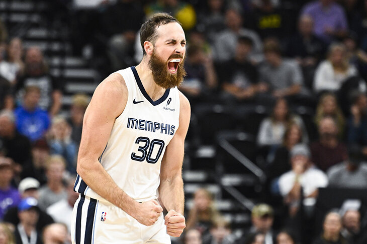 Центровой «Мемфиса» Джей Хафф до сих пор воспринимается как новичок, хотя дебютировал еще в 2021-м. За четыре года в НБА Джей сменил четыре клуба и пока ни в одном из них не сыграл больше 20 матчей. Первый – и пока единственный – раз в старте он вышел в недавней игре против «Лейкерс» («Гриззлис» уступили «-5»). В 26 лет он держит флагманский курс на преждевременное облысение, хотя и пытается отвлечь нас от очевидного своей кустистой бородой.