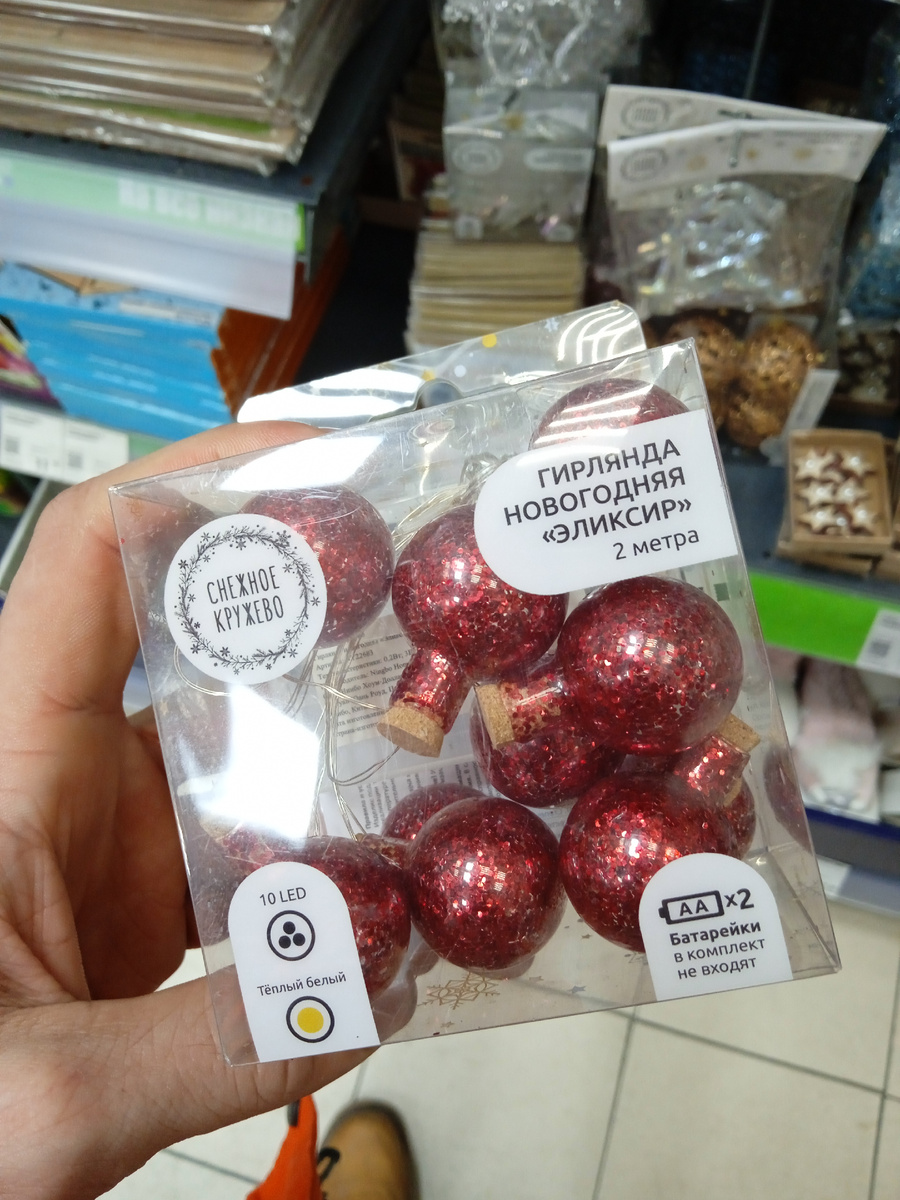Всем большой привет! Сегодня я подготовил для вас небольшой обзор товаров для новогодних праздников из магазина фикс прайс. Скажу сразу, этот магазин в очередной раз радует большим ассортиментом товаров для зимних праздников, и если вы не хотите пропустить новые обзоры то подписывайтесь на канал, так - как, в одну статью всё точно не влезет и будут новые выпуски. 1. Товар - Гирлянда Новогодняя "Эликсир" Гирлянда довольно красивая и стильная. Выполнена в форме маленьких флаконов с эликсиром красного цвета. Такие эликсиры наверняка знакомы фанатам различным компьютерных играх, где в таких флаконах хранился эликсир восстанавливающий здоровье персонажа. Поэтому, если вы фанат какой-нибудь игры, то думаю вам понравится такая новинка. Да и в принципе, гирлянда весьма хорошая, и думаю не только геймеры захотят украсить ей свою ёлку или интерьер. Цена гирлянды не большая всего 199 рублей. Из явных минус можно выявить только небольшую длину, всего 2 м, и то что гирлянда работает на батарейк