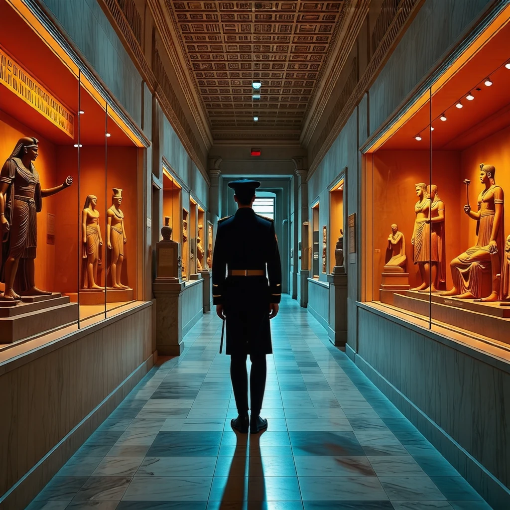 Петрович как-то странно усмехнулся: "Да ничего особенного. Обход каждые два часа, камеры проверяешь. Главное – не засни на посту. И это... в египетский зал без особой нужды не заходи."