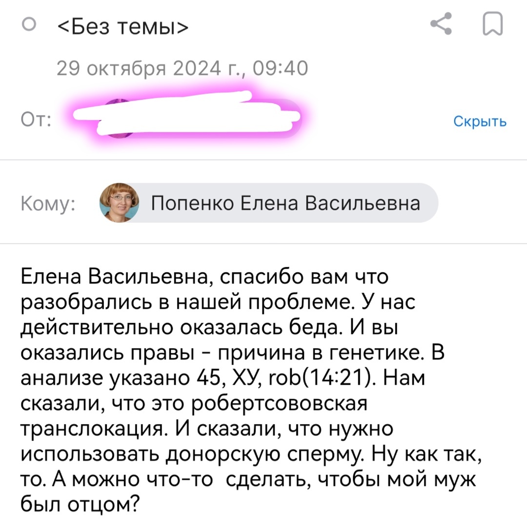 Сегодня получила благодарность от пациентов. Я рада, что смогла помочь паре разобраться в их проблеме. Зная причину, теперь можно найти решение и помочь.