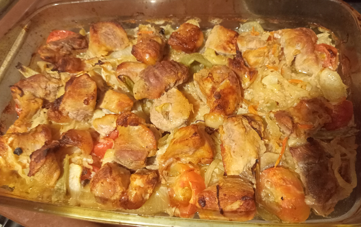 Дорогие друзья, вот вам непривычный рецепт. В принципе. я уже готовит так, мариновал в томатном пиве. но тут взял один вариант, так как по вкусовым качествам, получается оно более интересно для маринада. Ингредиенты: Свинина Лук репчатый Лавровый лист Квашеная капуста Грибы Помидоры Перец чёрный горошком Способ приготовления: Берём кусок мяса, ну примерно кило или около кило. Хорошо промыли, вырезали весь ненужный жир и требуху. Дайте мясу слить воду еще. промокните или отожмите. Займитесь разделкой. Куски должны быть крупные, шашлычные. Маринад! Складываем в удобную форму нарезанное мясо. Берём томатное пиво, наливаем примерно в стакан 100 мл, и опрокидываем внутрь себя. А теперь берём бутылку и круговыми движениями помешайте весь состав что бутылке. Налейте примерно 150 мл в стакан, и вот теперь мы это дело заправляем в наше мясо. Залили. Перемешайте мясо в пиве. Пивчанский зовётся "томато-потато", это видоизменённый "томато-мотато". Сейчас ещё добавим лука. Лук репчатый на
