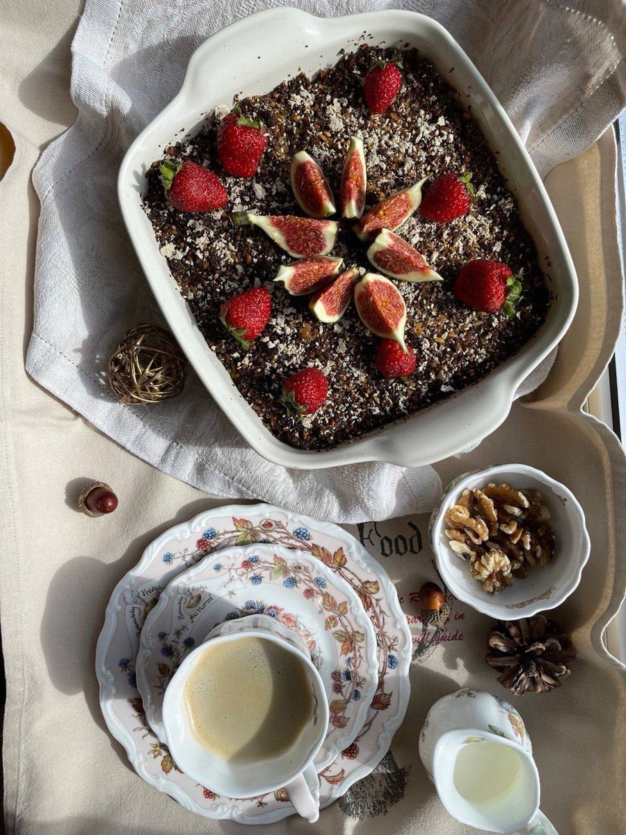 Самый уютный осенний пирог готовила сегодня - крамбл с яблоками, грушами и ягодами. С ароматом корицы и кардамона; теплый, сочный и хрустящий одновременно! Кстати, он без глютена😂 Готовьте в выходные! Нам понадобится: для начинки - нижний слой: 🍒 яблоки - 2 шт 🍒 груша - 1 шт 🍒 кленовый сироп/мед/кокосовый сахар - 1 ст.л. 🍒 кардамон - 1/3 ч.л. 🍒 корица - 1 ч.л. 🍒 замороженные/свежие ягоды черники/голубики/малины/ежевики/ смородины - 200 г (у меня черника и смородина) 🍒 кленовый сироп/мед/ кокосовый сахар - 1 ст.л. по желанию для крошки - верхний слой: 🍒 зелёная гречка - 140 г 🍒 миндальная мука - 50 г 🍒 мак - 40 г 🍒 кокосовая стружка - 30 г 🍒 кокосовое масло - 50 г (можно использовать сливочное растопленное) 🍒 кленовый сироп/мед/кокосовый сахар- 1 ст.л. 🍒 корица - 1 ч.л. 🍒 кардамон - 1/4 ч.л. Приготовление: ✅ Нижний слой. Нарезать грушу, яблоко, положить в чашу блендера. Добавить сахар, кардамон и корицу. Взбить до однородной массы. ✅ Выложить в подготовленную форму, выст