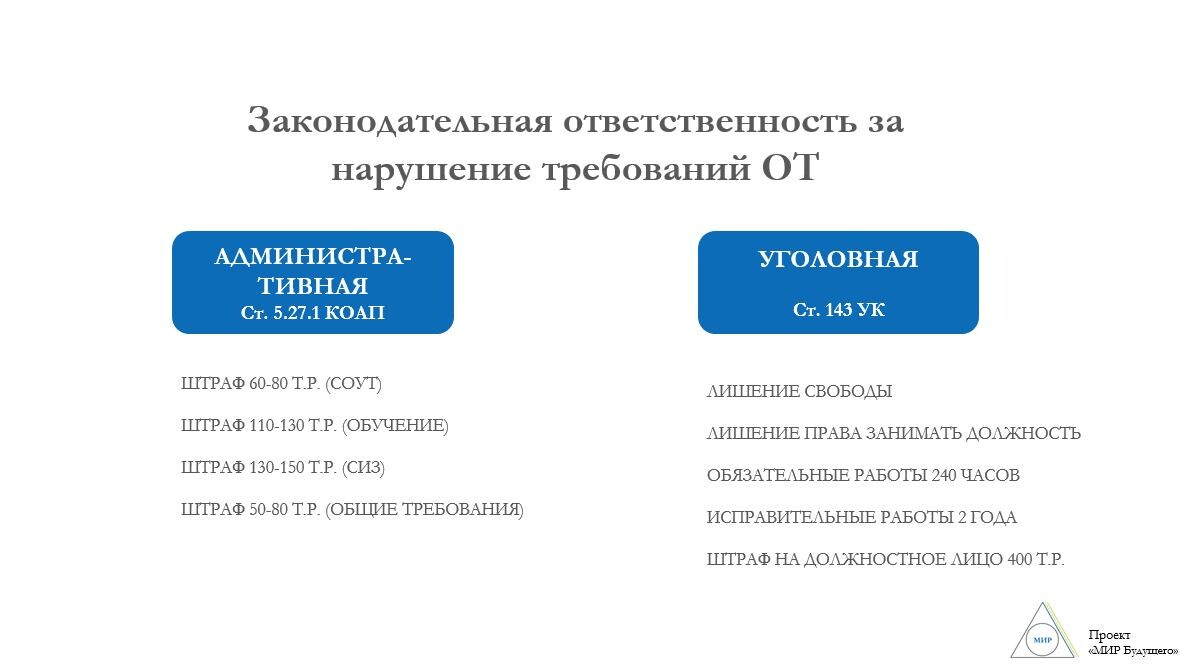 Мысли мыслями, а ответственность за нарушение требований охраны труда предусмотрена законом: