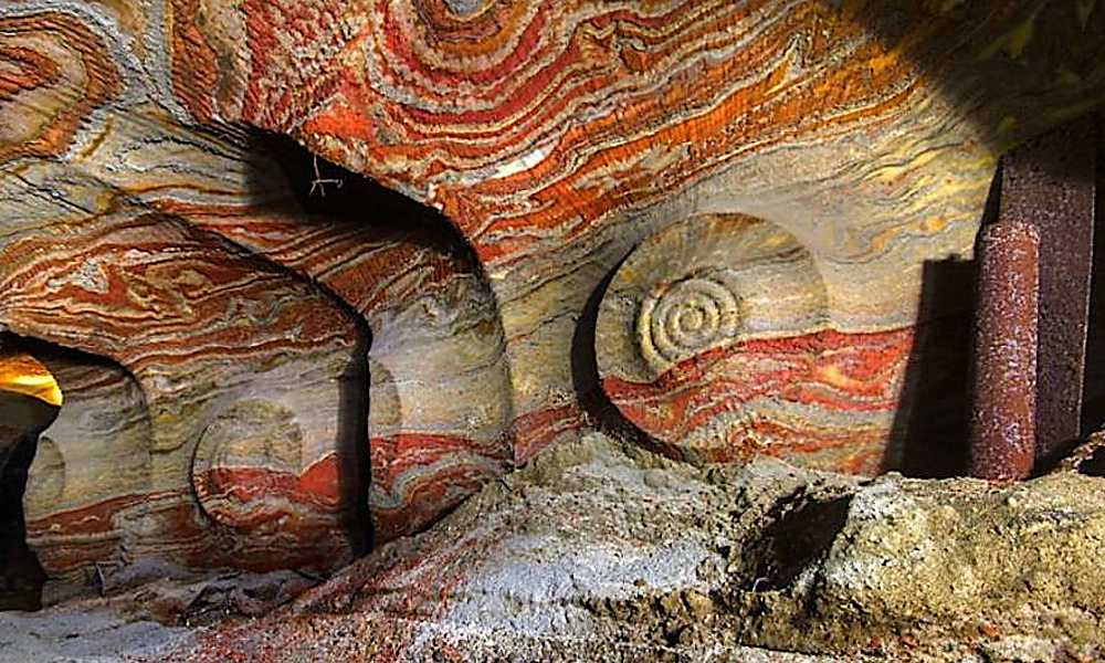 А теперь взгляните на фото. Туннель действительно поражает своим масштабом. Но его идеальные формы и вертикальные борозды на стенах наводят на мысли, что всё это рукотворное сооружение. Уж очень похоже на горнопроходческий туннель. Ведь, если его промыла вода, то были бы горизонтальные борозды.