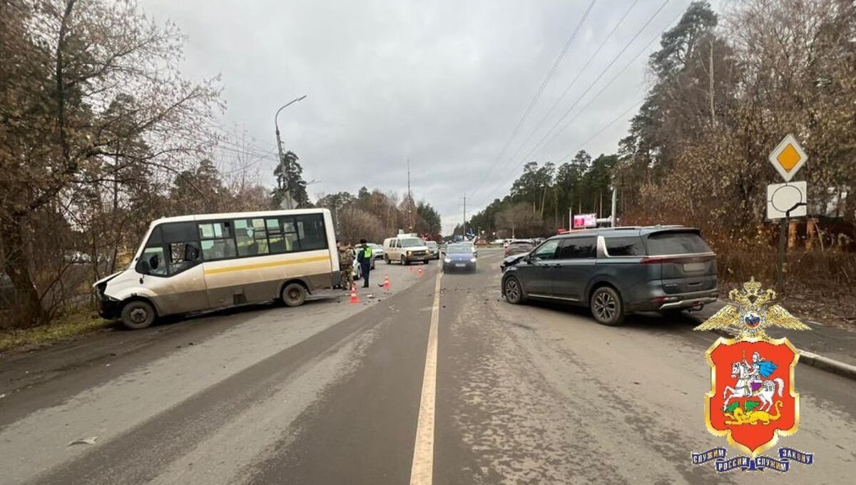 В городе Раменское увлекательная поездка была прервана лобовым ДТП на встречной полосе. Шальной автобус врезался в легковой автомобиль, после чего водитель-угонщик был обезврежен преследовавшими его сотрудниками полиции.