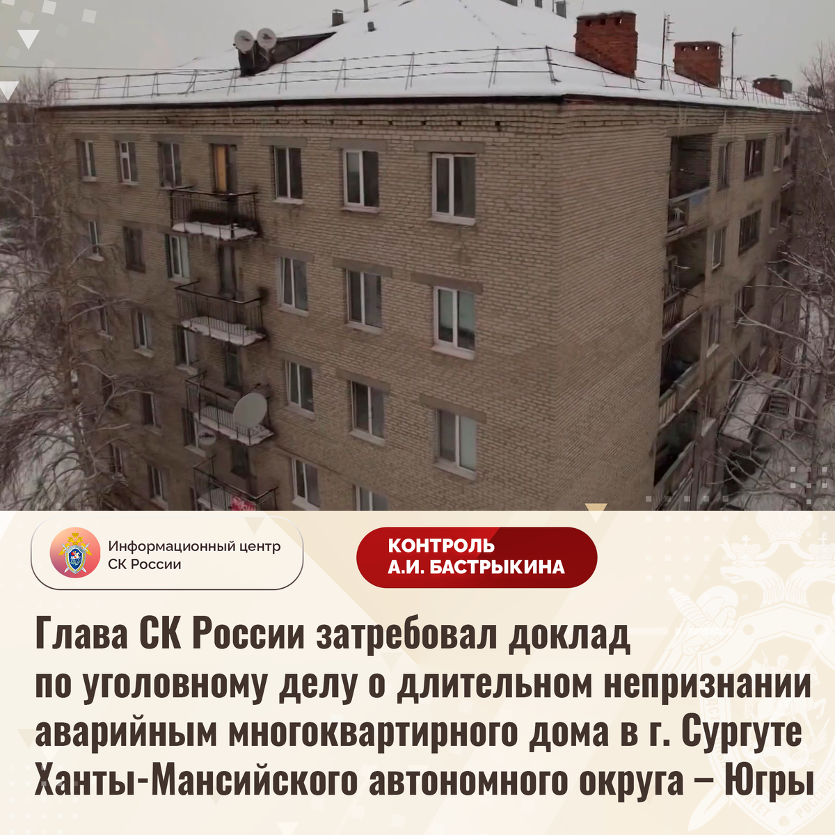 Глава СК России затребовал доклад по уголовному делу о длительном непризнании аварийным многоквартирного дома в г. Сургуте