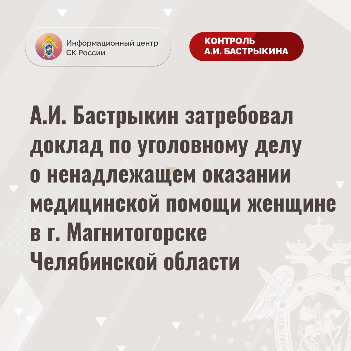 А.И. Бастрыкин затребовал доклад по уголовному делу о ненадлежащем оказании медицинской помощи женщине в г. Магнитогорске Челябинской области