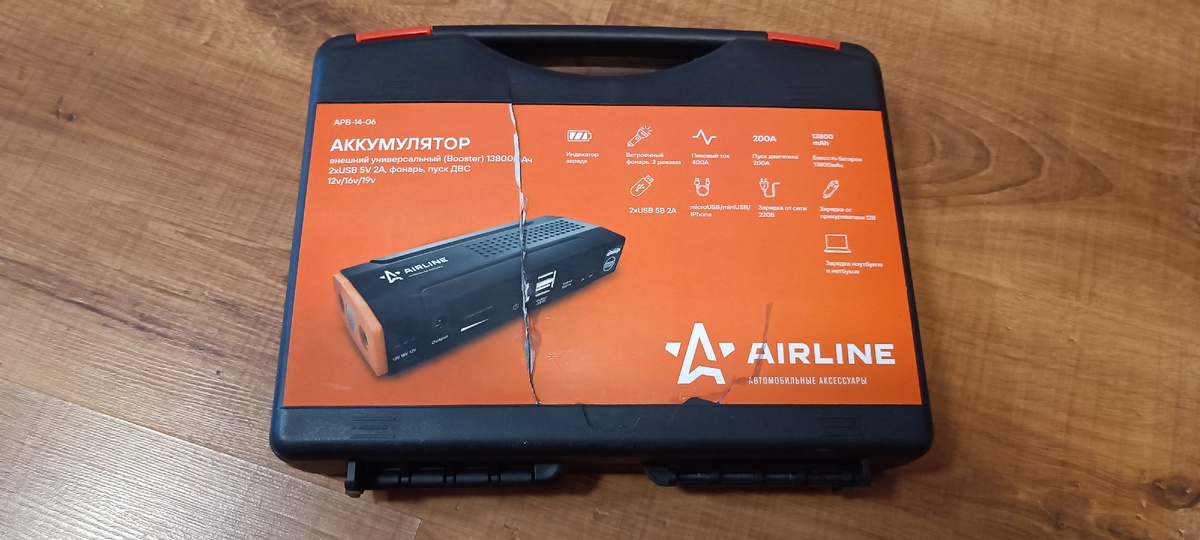 Так вот сегодня хотелось бы поведать о своем новом приобретении, а именно о пусковом устройстве AirLine 13800мАч, 400А, 12.4V, пуск ДВС 2.0d, USB 5V/2A, 12/16/19V, кейс (APB-14-06) которое можно использовать не только для запуска аккумулятора, но также и как пауэр банк для подзарядки каких либо гаджетов, как в автомобиле так и где угодно, хоть дома если нет под рукой зарядника.