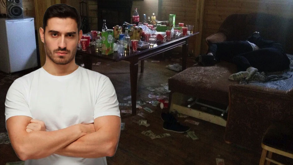 Костя действительно беззаботно спал прямо в одежде и обуви на диване, выдавая раскатистый храп. В воздухе висел стойкий запах перегара.