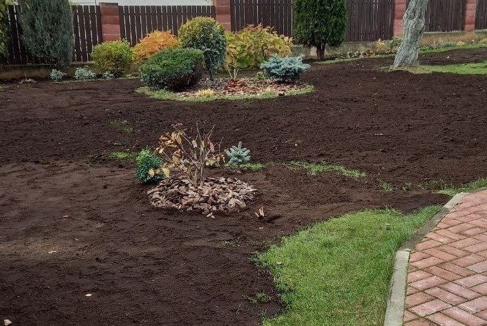 Как быть, если зима на носу, а надо посеять газон? Таким вопросом озадачилась я, когда в прошлом году в ноябре купила недорого 6 тонн чернозема. Мы спилили старые плодовые деревья, выкорчевали огромные заболевшие можжевельники, а еще я разобрала розарий. Образовались ямы, перепады. Поэтому, увидев рекламу продажи чернозема по сниженной цене, не раздумывая, заказала машину. Перепахивать землю не стали, а просто развозили землю тачкой, засыпая сперва неровности, а затем растаскивая граблями по старому газону. Толщина слоя в разных местах была от 30 до 10 см. Сперва хотели натянуть бечевку и использовать уровень, но было холодно, и за два дня мы умаялись так, что решили сделать на глазок, а весной откорректировать. Да и чернозем как-то разошелся незаметно, можно было покупать тонны на две больше. С одной стороны, сердце грел тот факт, что более или менее от ямок и неровностей избавились, с другой - не хотелось весной опять заниматься газоном, да и вид в саду был ещё тот. Хотелось посеять