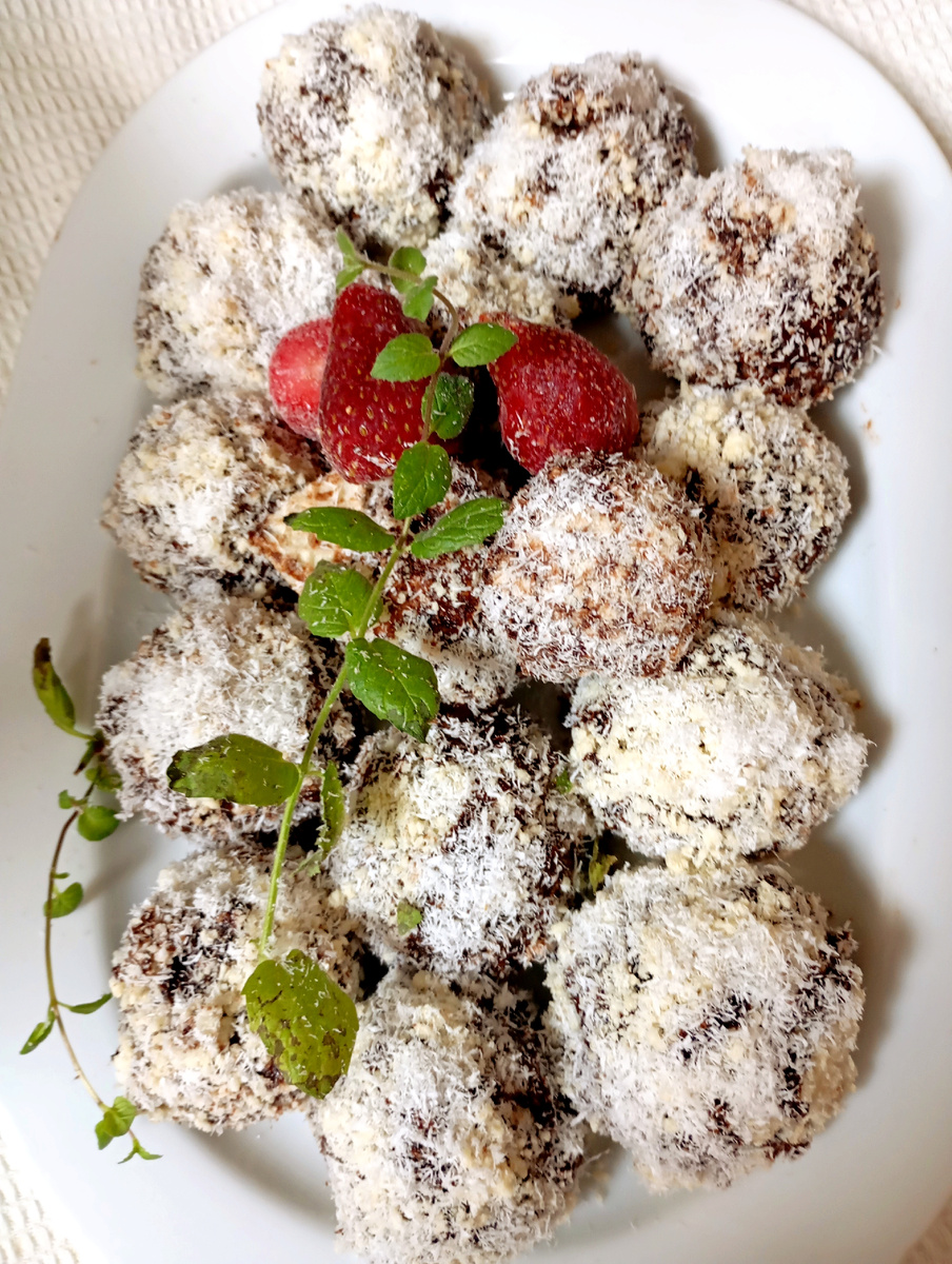 Еда домашняя, выпечка к чаю 17 ноября 2024 г. Добрый вечер, день подошёл к концу и я испекла печенье, как и обещала делюсь рецептом. Испеките к Новому году, не пожалеете. Для печенья мне понадобилось: Тесто Яйца. - 5 шт. Маргарин или сливочное масло. -200 г. Сметана. -3 ст. л Мука пшеничная. - 2 стакана Сода -1/2 ч. л. Глазурь: Какао -3 ст. л Сл. масло. - 100 г Сахар. -10 ст.л Вода кипячёная. - 3 ст л Крошка Вафли -2 пачки Кокосовая стружка -2-3 ст л Приготовление теста Сварила яйца, для печенья использую варёные желтки, а половинки белков можно нафаршировать и использовать как закуску новогоднюю или к завтраку Я по-быстрому нафаршировала печёночным паштетом белки, сверху майонез и зелень.. Приступила к тесту для печенья. Размяла желток вилкой, добавила кусоч