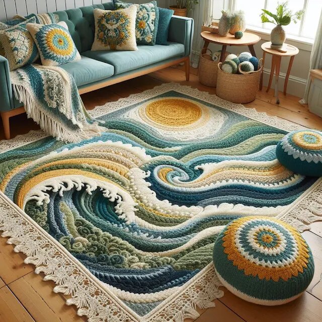 Вы встаёте с кровати и ваши ножки погружаются в мягкий вязаный крючком коврик ручной работы. Нежная текстура приветствует вас, словно тёплые объятия, и внезапно ваше утро становится немного приятнее. Вот про какие коврики речь: Функционально - это коврики, по сути - произведения искусства. Я бы ещё подумала, стоит ли топтать такую красоту. За что купила, за то и продаю: утверждается, что это не ИИ нарисовал, а действительно коврики крючком вручную связанные. Посмотрите на этот коврик: Я бы только кайму определила как ручное вязание. Хотя, кто его знает, на свете много чудес и мастеров, творящих порой, казалось бы, совсем невозможное. На следующих ковриках вязание явно просматривается: На таких коврах только и сидеть, лениво развалившись на подушках, с чашечкой кофе в окружении красоты: Картинки взяты с англоязычного сайта https://www.crochety.net/2024/02/crochet-floor-mats-with-matching.html?m=1 Всем хорошего настроения, до встречи!