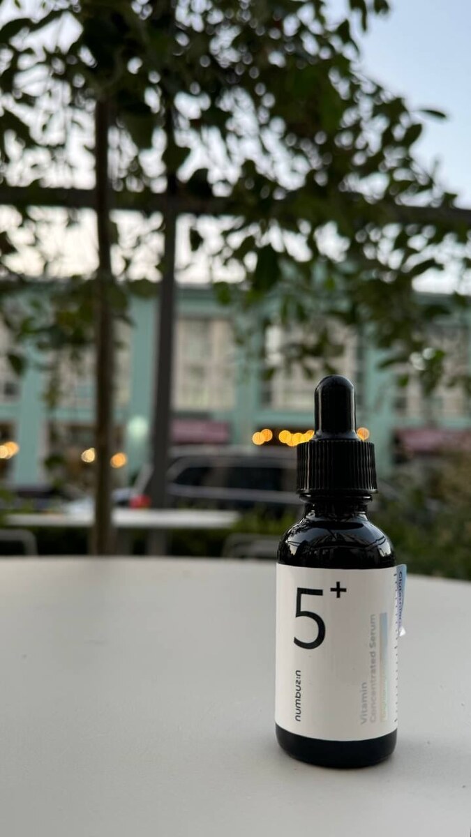Подошло к концу ещё одно средство из категории любимчиков — витаминная сыворотка для лица Numbuzin No.5 Vitamin Concentrated Serum. Здесь просто коктейль антиоксидантов с добавлением пробиотиков, церамидов и пантенола. Пока что это лучшая сыворотка с витамином С из тех, что я пробовала 🤩 💔 помимо витамина С, здесь содержатся транексамовая кислота (4%), ниацинамид (5%) и глутатион — всё для борьбы с пигментацией и улучшения цвета лица. И у меня действительно пятнышки на лице стали значительно меньше, несмотря на активное солнце. Полностью они не исчезли, но результатом я очень довольна. Для большего эффекта все же нужны скорее пилинги. 💔 благодаря добавлению пантенола (5%) и церамидов это средство абсолютно не раздражает кожу. Даже когда у меня были покраснения и повышенная чувствительность кожи, не было никакого пощипывания. 💔 сыворотка хорошо впитывается, но не в ноль, при этом не оставляет липкости. Мне удавалось наносить поверх неё лёгкий крем, а затем солнцезащитное средство —
